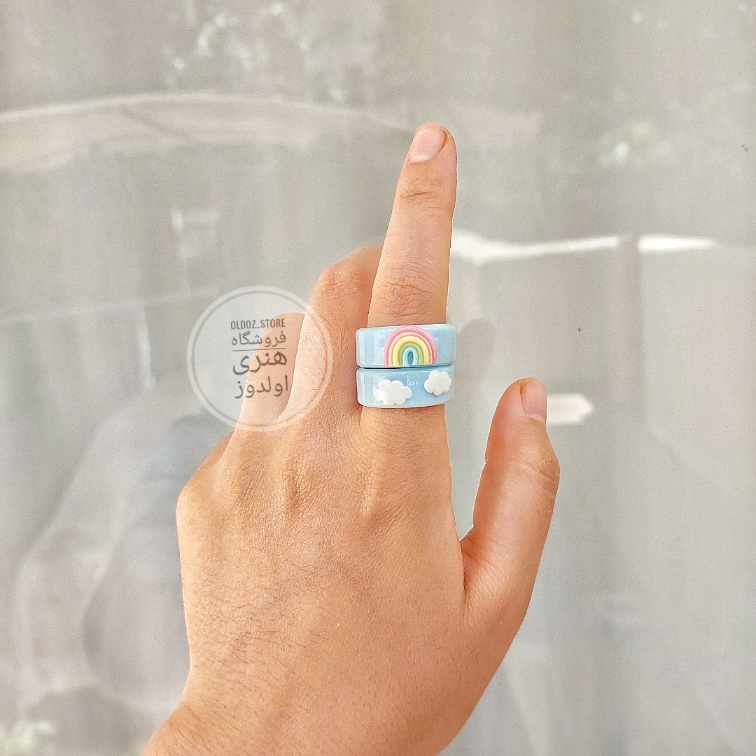 ست انگشتر خمیری مدل ابر و رنگین کمان