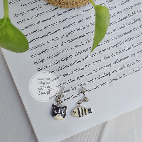 گوشواره دخترانه لنگه به لنگه مدل گربه و ماهی مینیمال