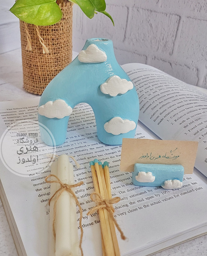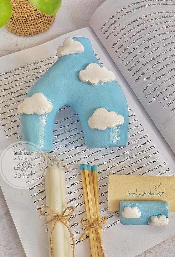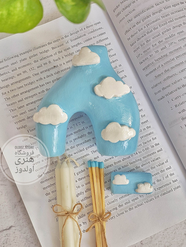 محتویات پک: جاشمعی ابر، هولدر نوت ابر، ۳ عدد شمع قلمی، ۶ عدد کبریت بلند آبی