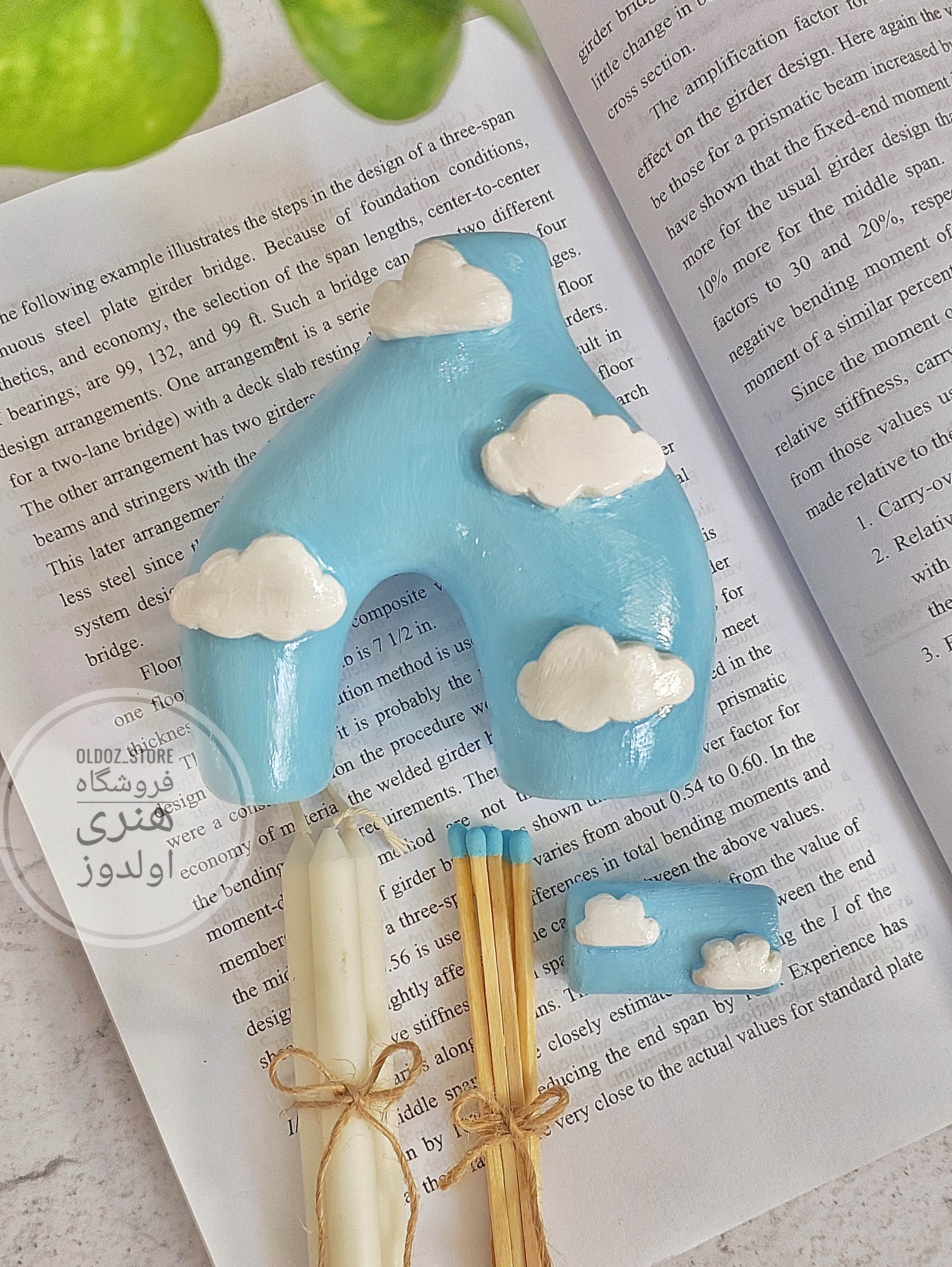 محتویات پک: جاشمعی ابر، هولدر نوت ابر، ۳ عدد شمع قلمی، ۶ عدد کبریت بلند آبی