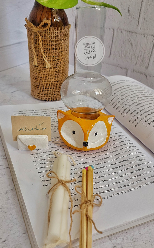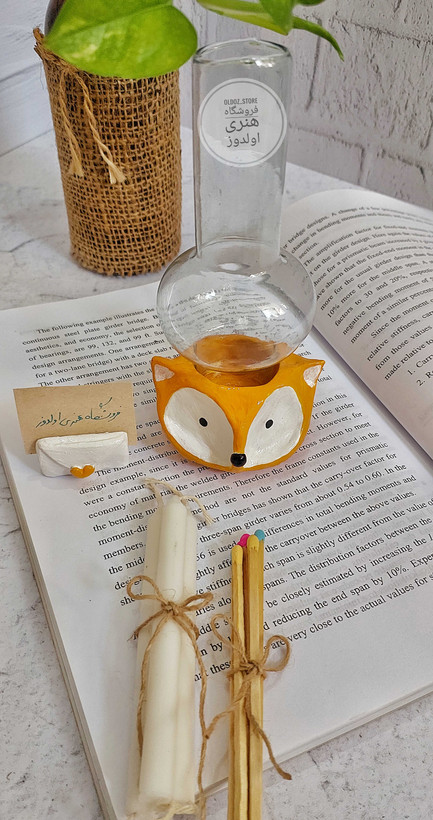 محتویات پک: جاشمعی فانوسی روباه، هولدر نوت نامه، ۳ عدد شمع قلمی، ۶ عدد کبریت بلند رنگی
