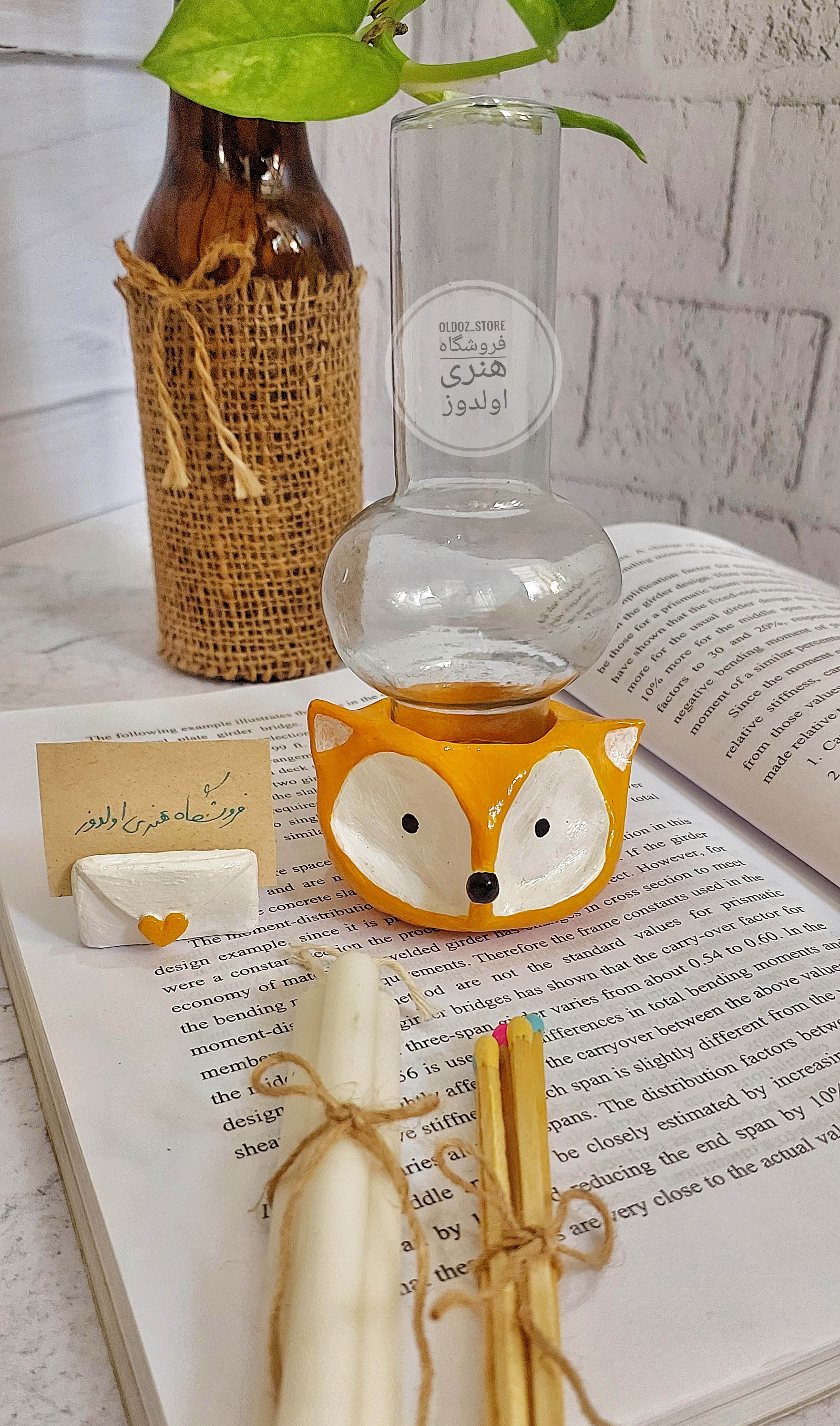محتویات پک: جاشمعی فانوسی روباه، هولدر نوت نامه، ۳ عدد شمع قلمی، ۶ عدد کبریت بلند رنگی