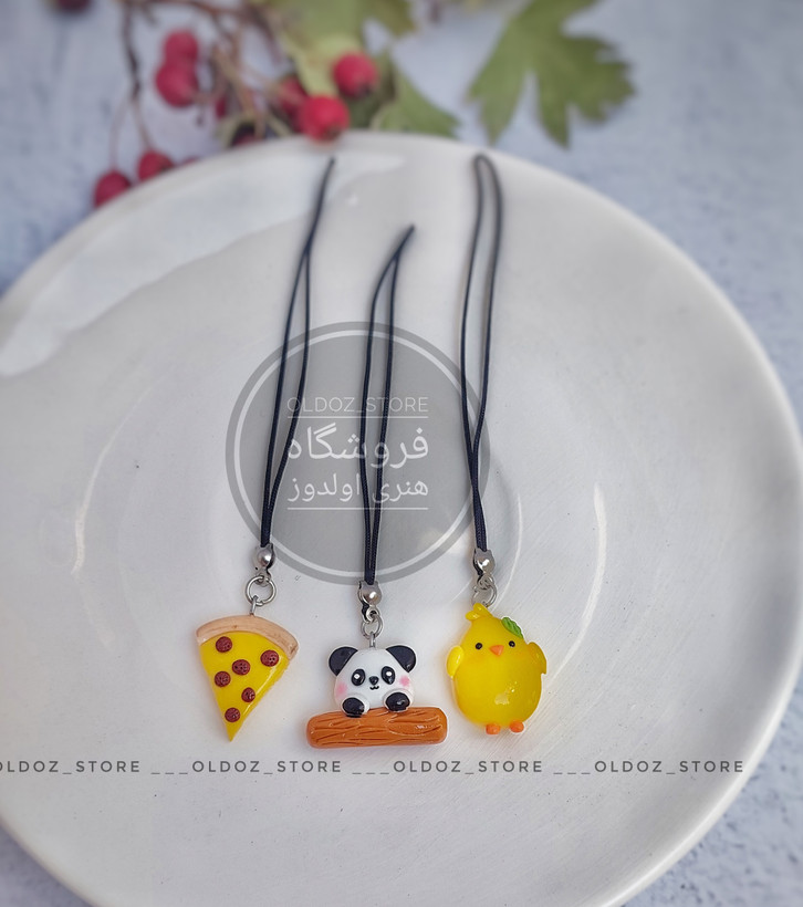 آویز گوشی در سه طرح پاندا، جوجه، و پیتزا