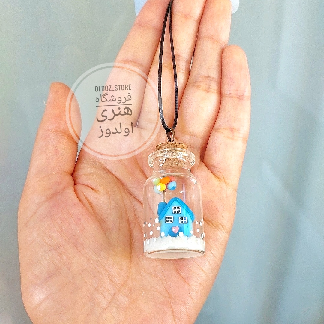 گردنبند جذاب خانه بادکنکی انیمیشن up داخل بطری ، کاملا دستساز و با کیفیت.