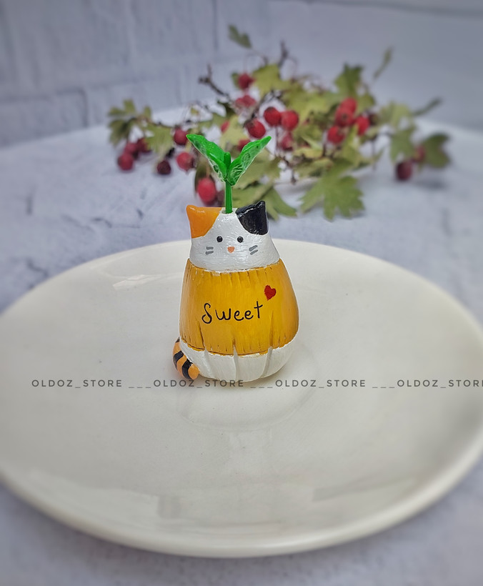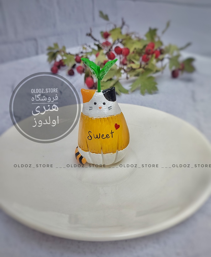 گلدونک دکوری مدل گربه به همراه یه جوانه که تو سرشه و نشونه امیده.