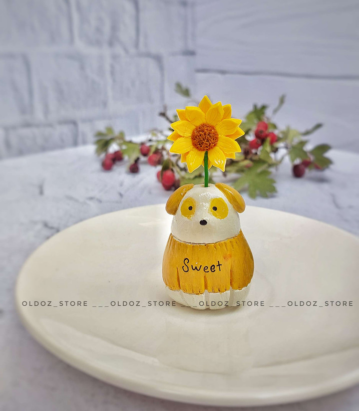 گلدونک پینترستی مدل سگ بامزه به همراه یه شاخه گل آفتابگردون یه کار خوشگل و دستسازه که هم میتونید به عنوان دکوری ازش استفاده کنید هم به عنوان جاعودی