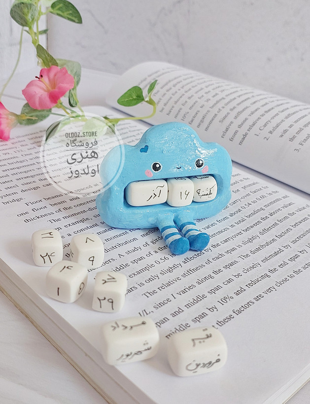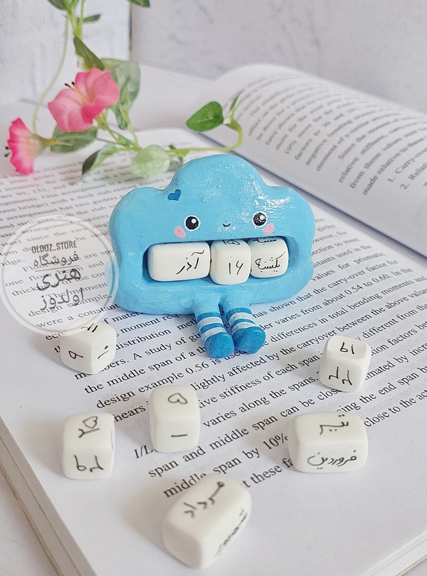 تقویم ابری شامل: ۵ مهره کوچیک برای ۳۰ روز ماه و ۳ مهره برای ۱۲ ماه سال و یک مهره برای روزهای هفته که میتونین بر اساس هر روز عدد تقویم رو تغییر بدین.