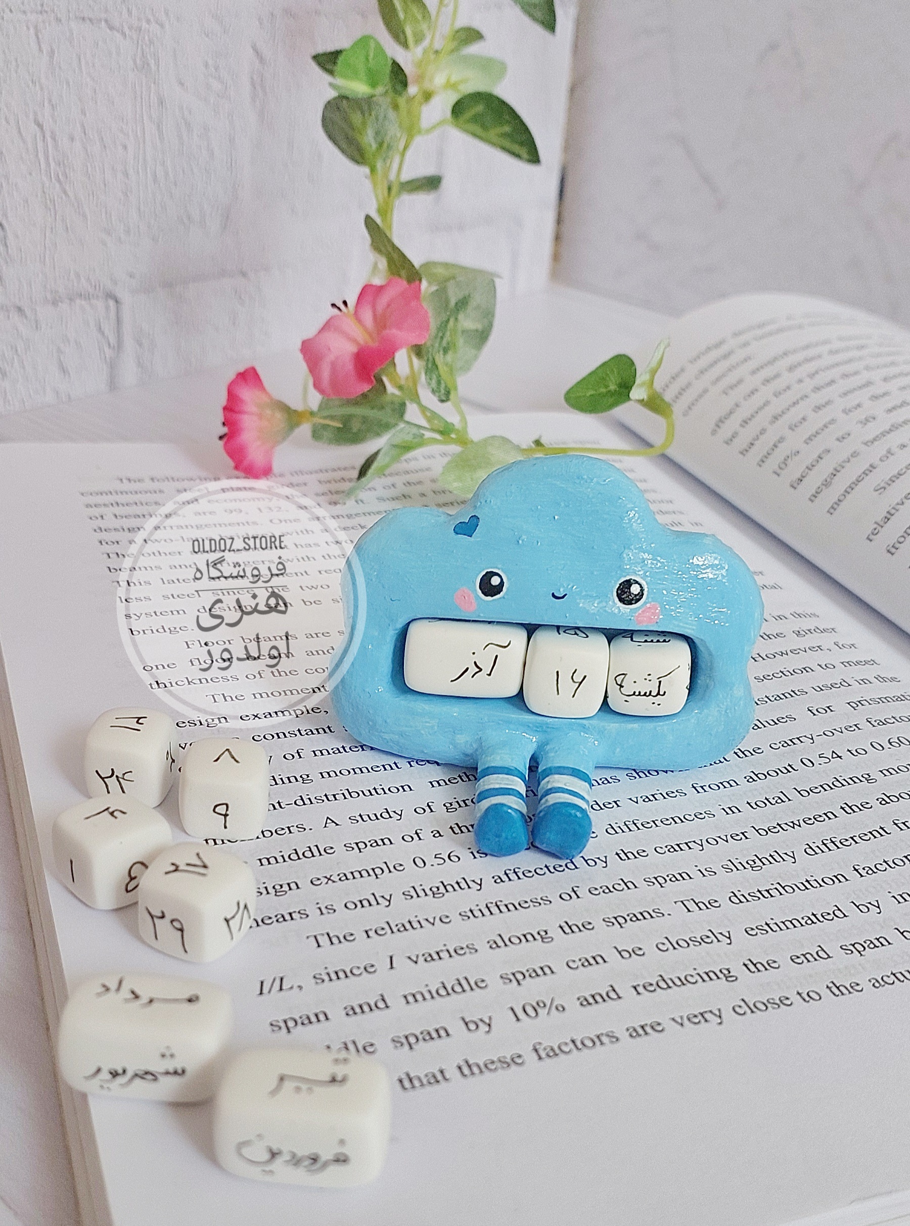 تقویم ابری شامل: ۵ مهره کوچیک برای ۳۰ روز ماه و ۳ مهره برای ۱۲ ماه سال و یک مهره برای روزهای هفته که میتونین بر اساس هر روز عدد تقویم رو تغییر بدین.