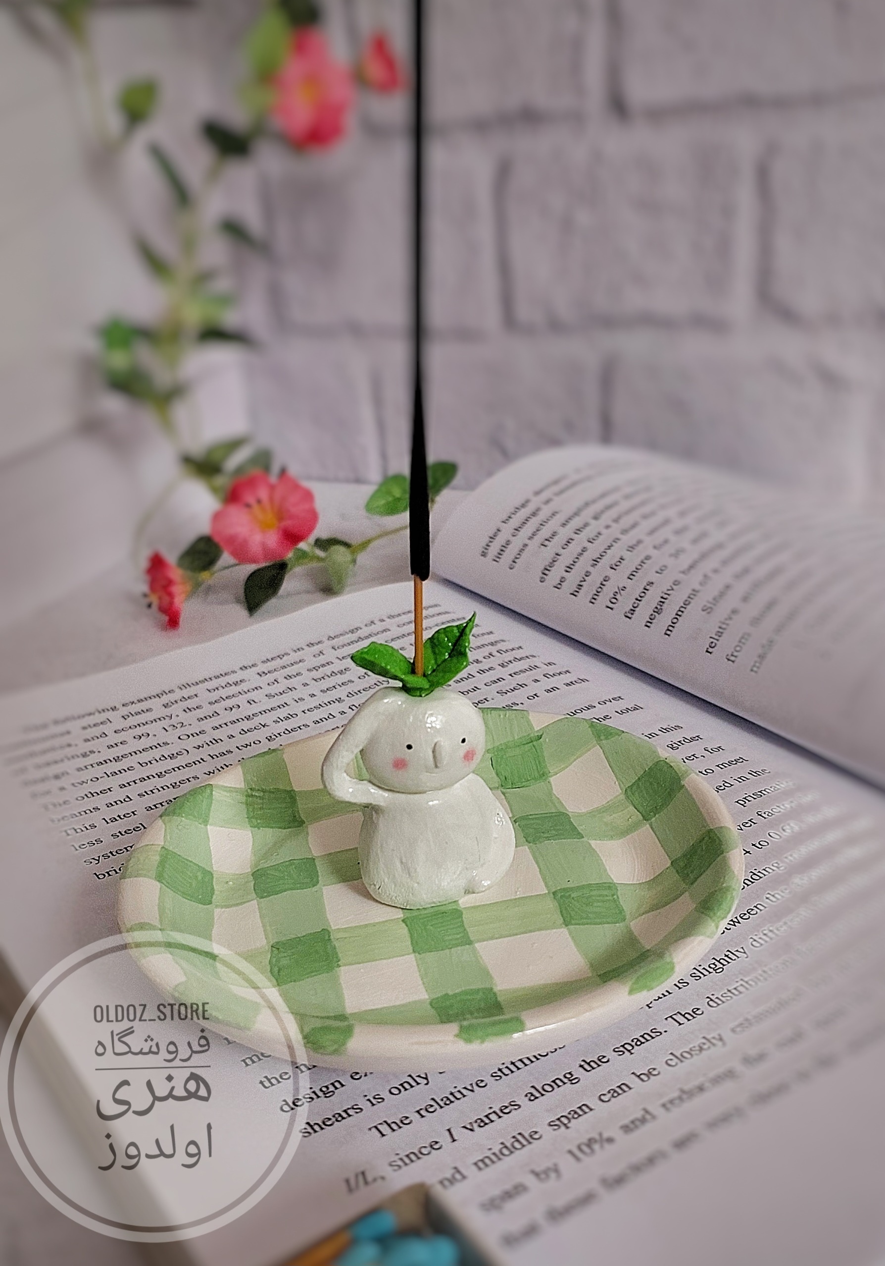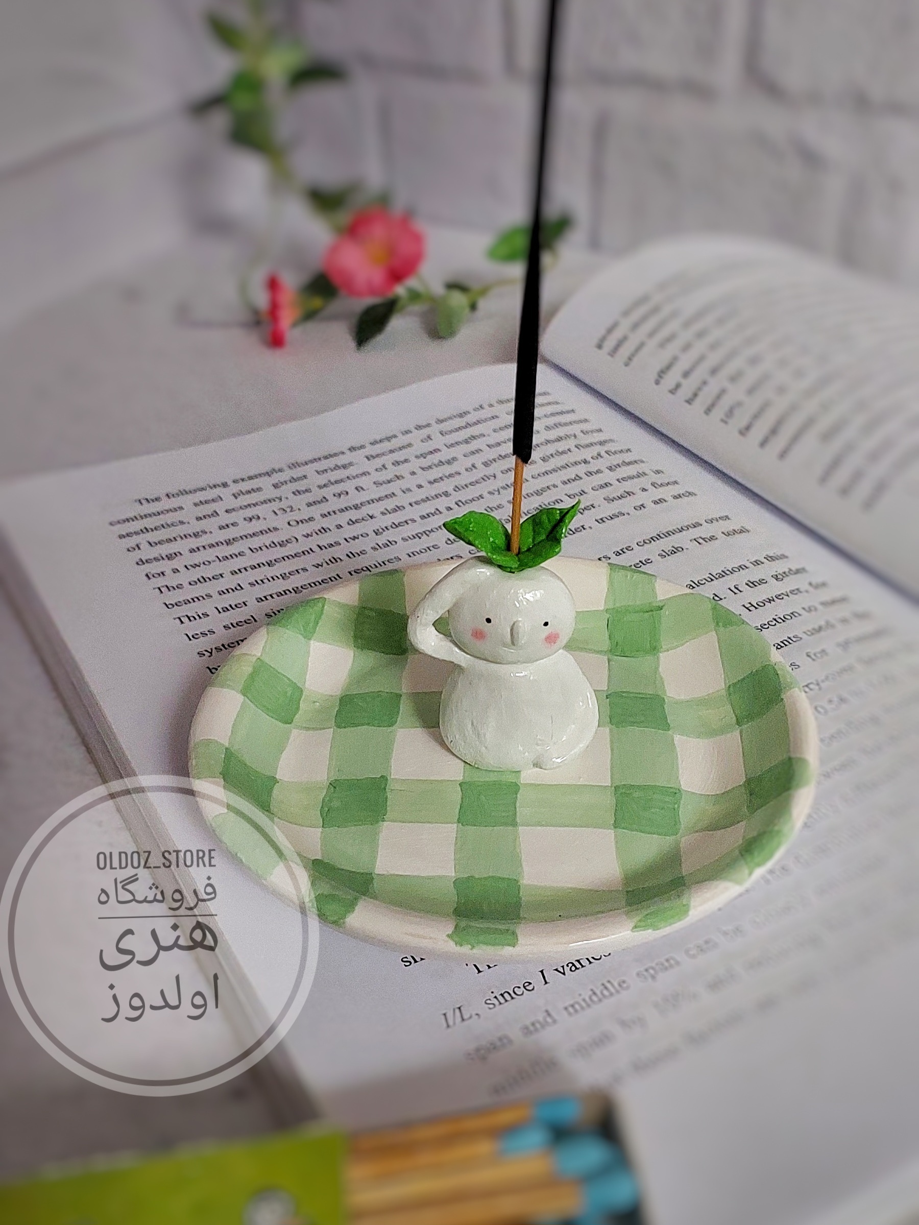 جاعودی آدمک جوانه به سر، به همراه بشقاب با نمکش.