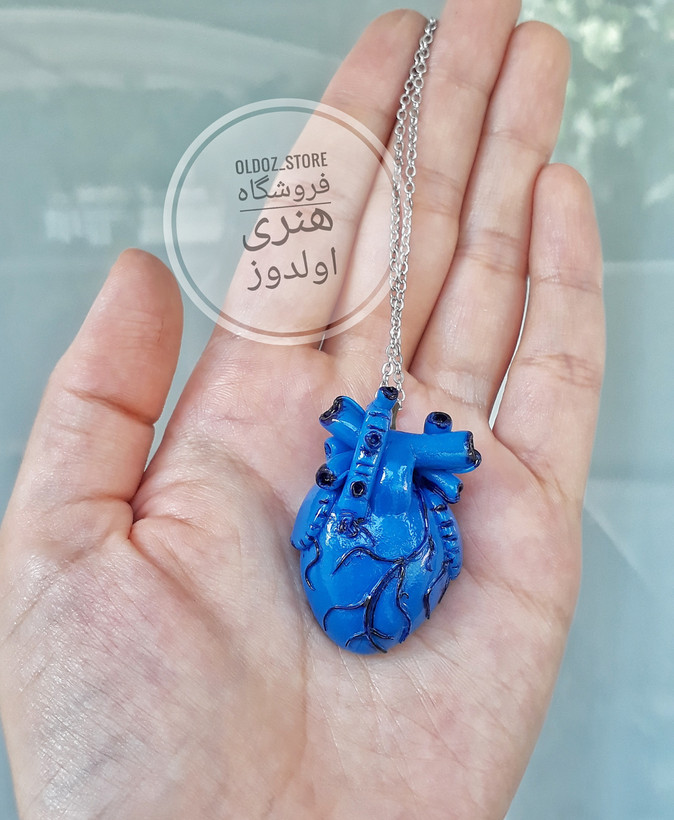 گردنبند قلب آناتومیک آبی، کاملا دستساز و شیک