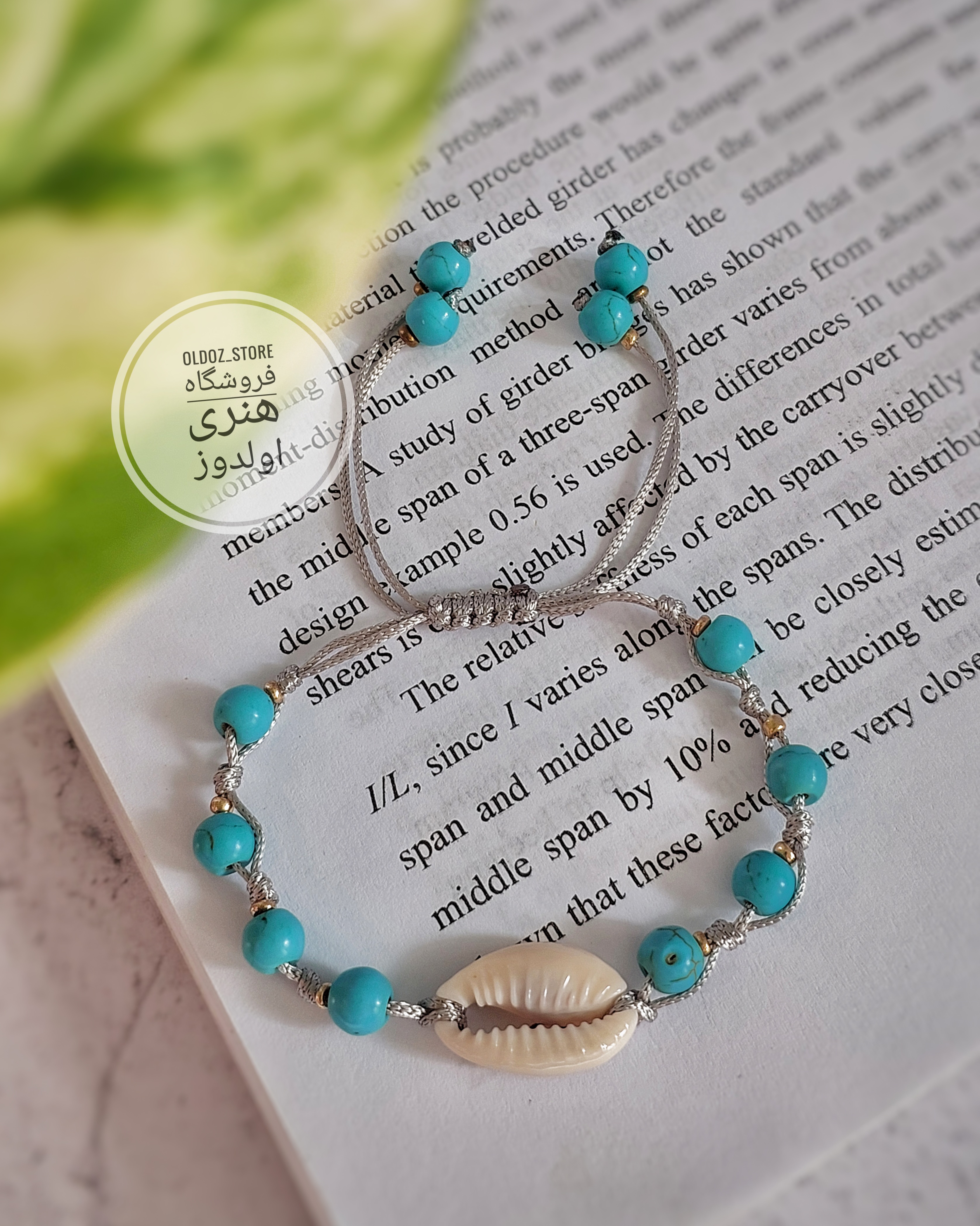 دستبند دخترانه دریا، مدل صدف و مهره های فیروزه ای جذاب و دلبر