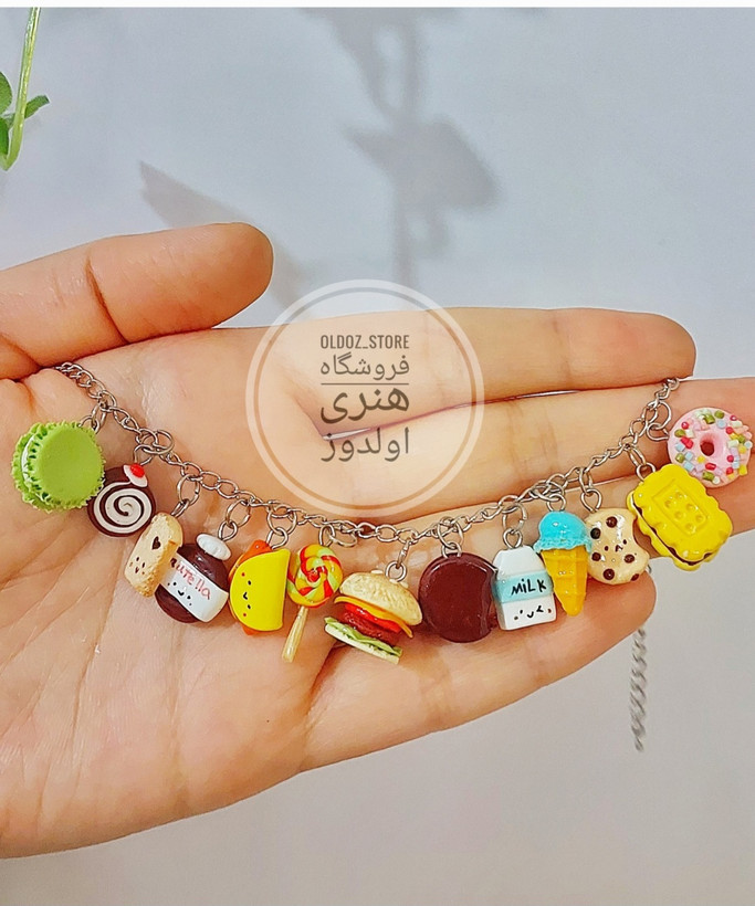 دستبند دخترانه طرح خوراکیجات، ساخته شده با خمیر پلیمری سبک و نشکن و رنگ ثابت 🧏♀️