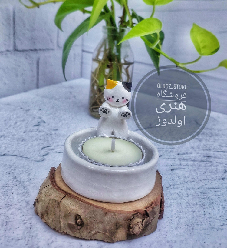 جاشمعی کیوت و فانتزی گربه که داره دستاشو گرم میکنه