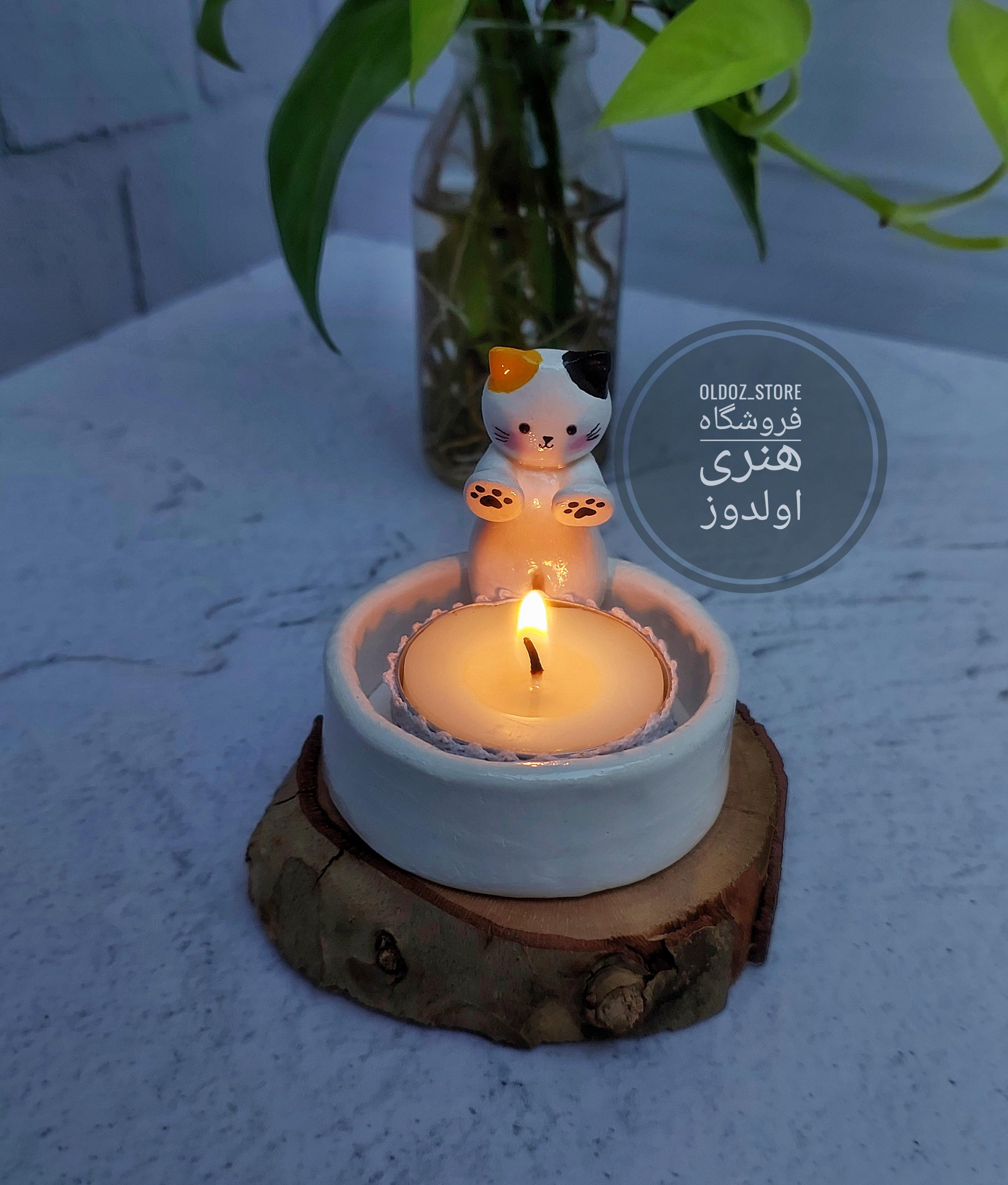 جاشمعی کیوت و فانتزی گربه که داره دستاشو گرم میکنه