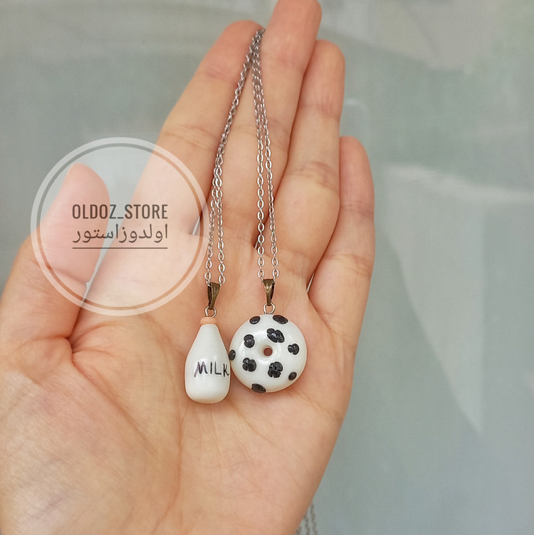 ست گردنبند دوستی دونفره فانتزی طرح میلک و دونات