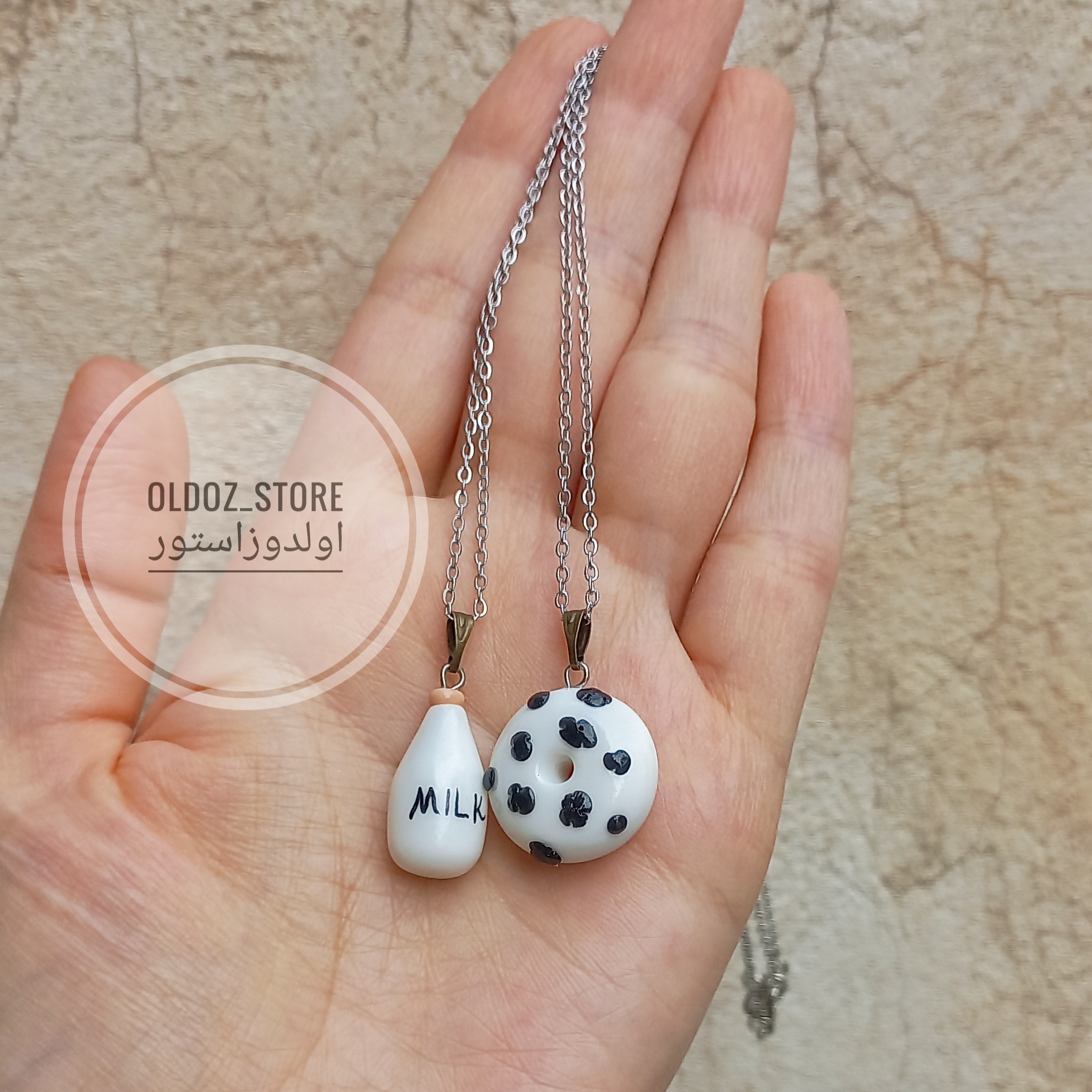 ست گردنبند دوستی دونفره فانتزی طرح میلک و دونات