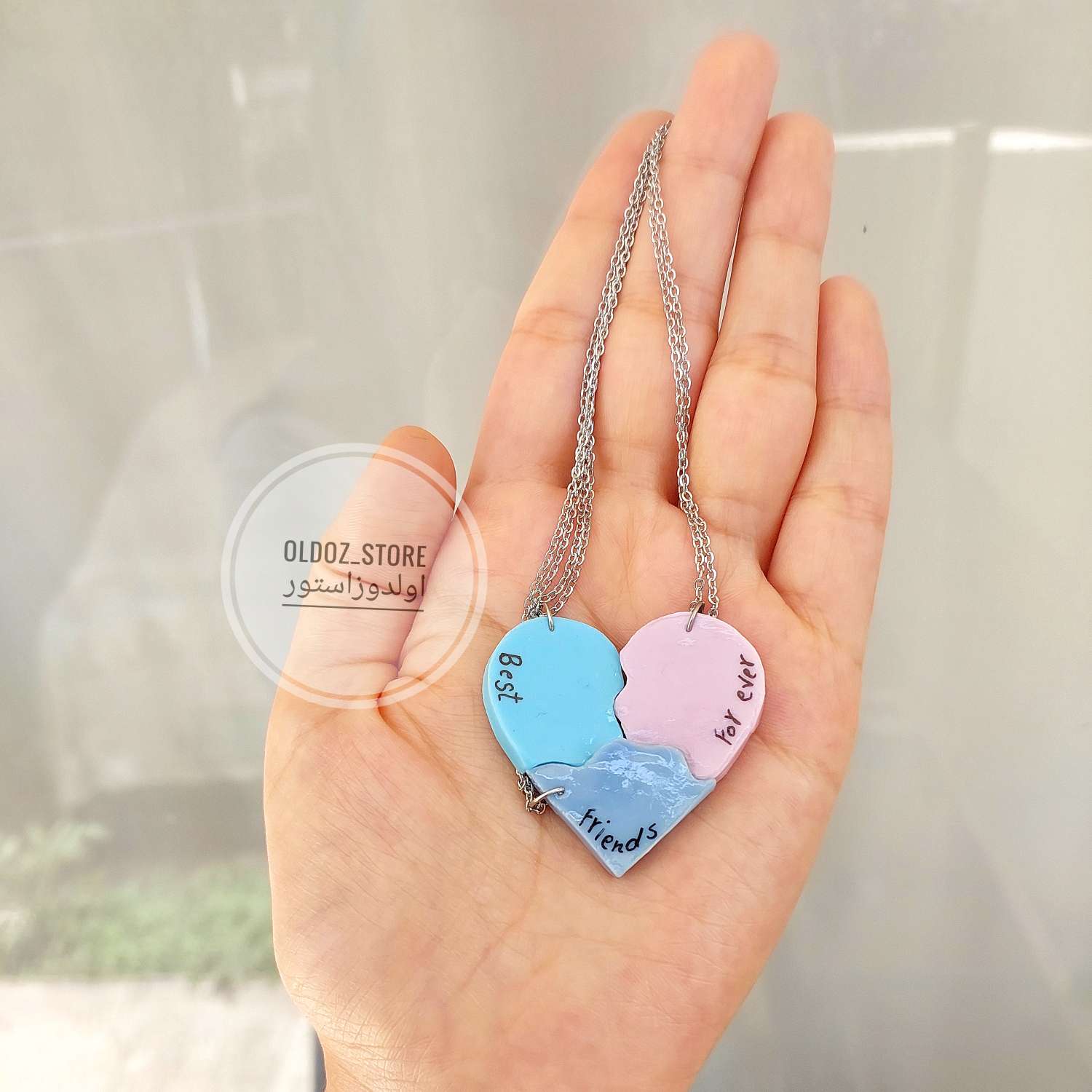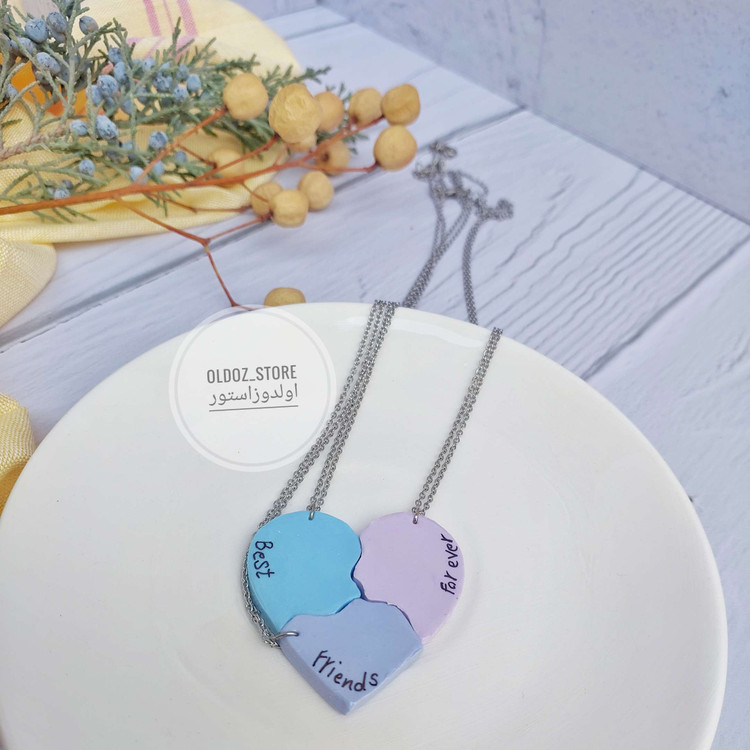 ست گردنبند دوستی سه نفره مدل پازل قلب رنگی پاستلی