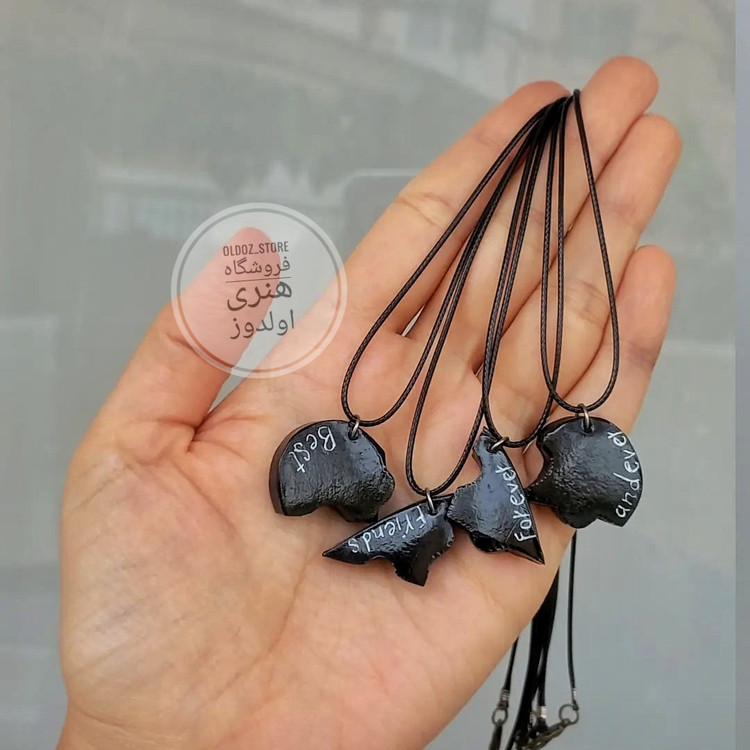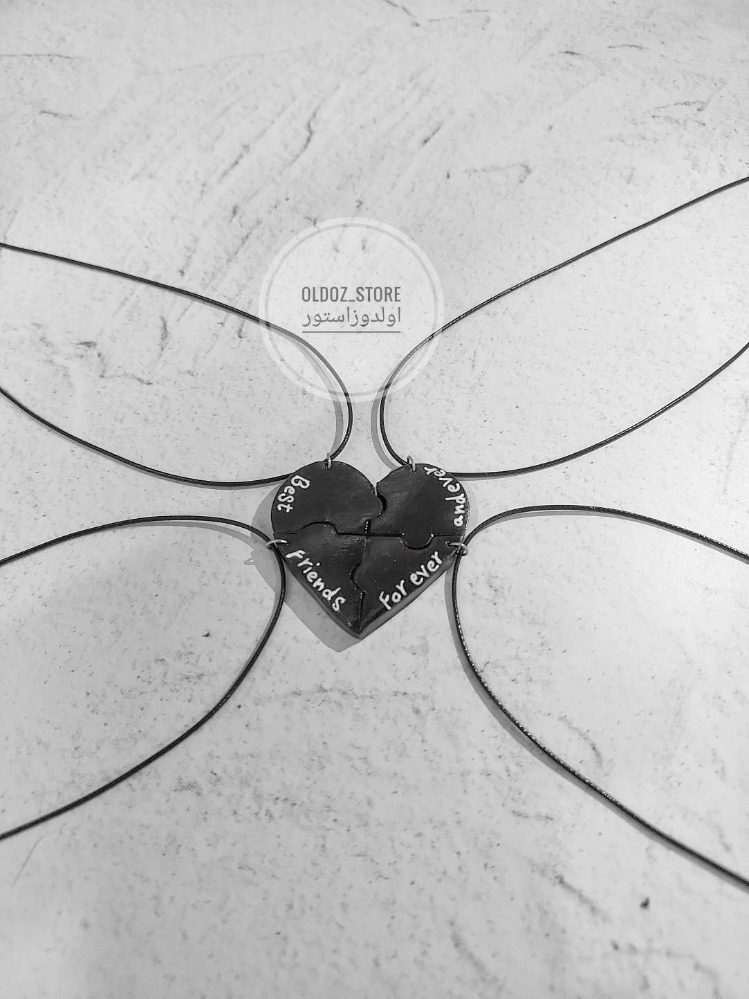 ست گردنبند پازل قلب مشکی، مناسب برای ۴ نفر، در دو نوع ساده و مگنتی قابل سفارشه، متن هم دلخواهه و میتونید در توضیحات سفارشتون ذکر کنید.
